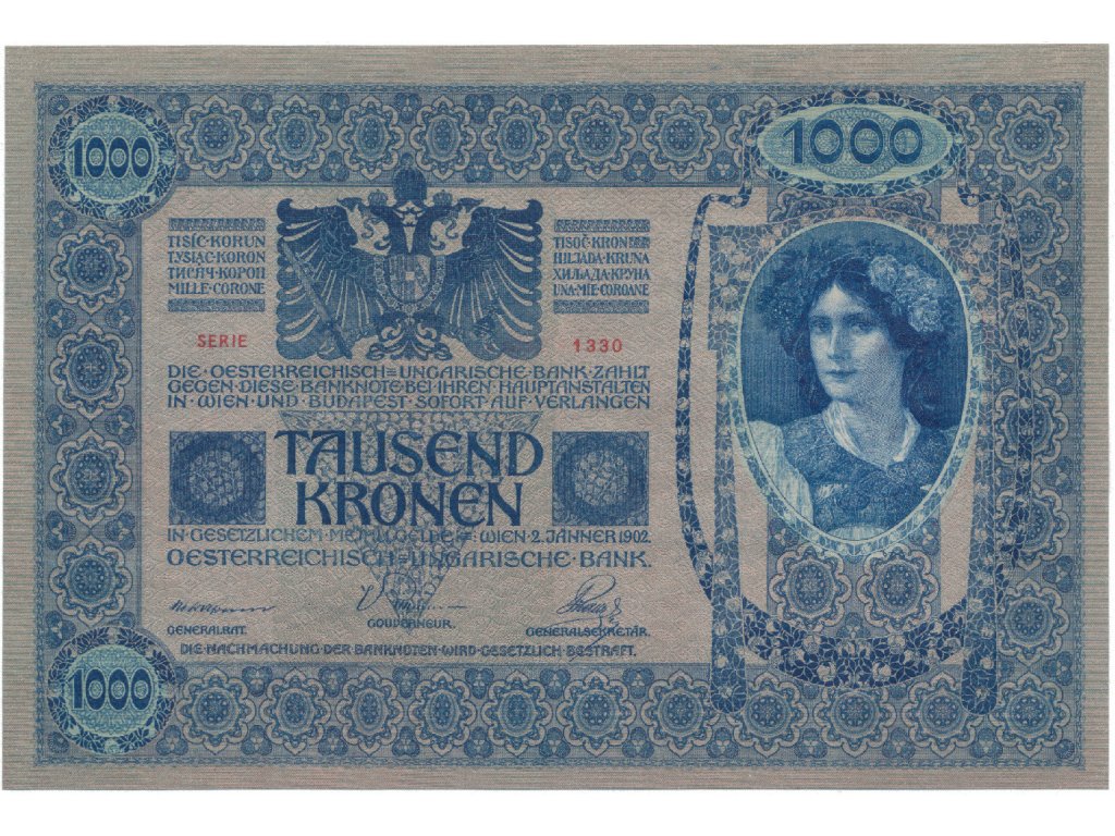 Rakousko - Uhersko, 1000 Koruna 1902, podtisk šedorůžový, bez přetisku, Hej.RU5b