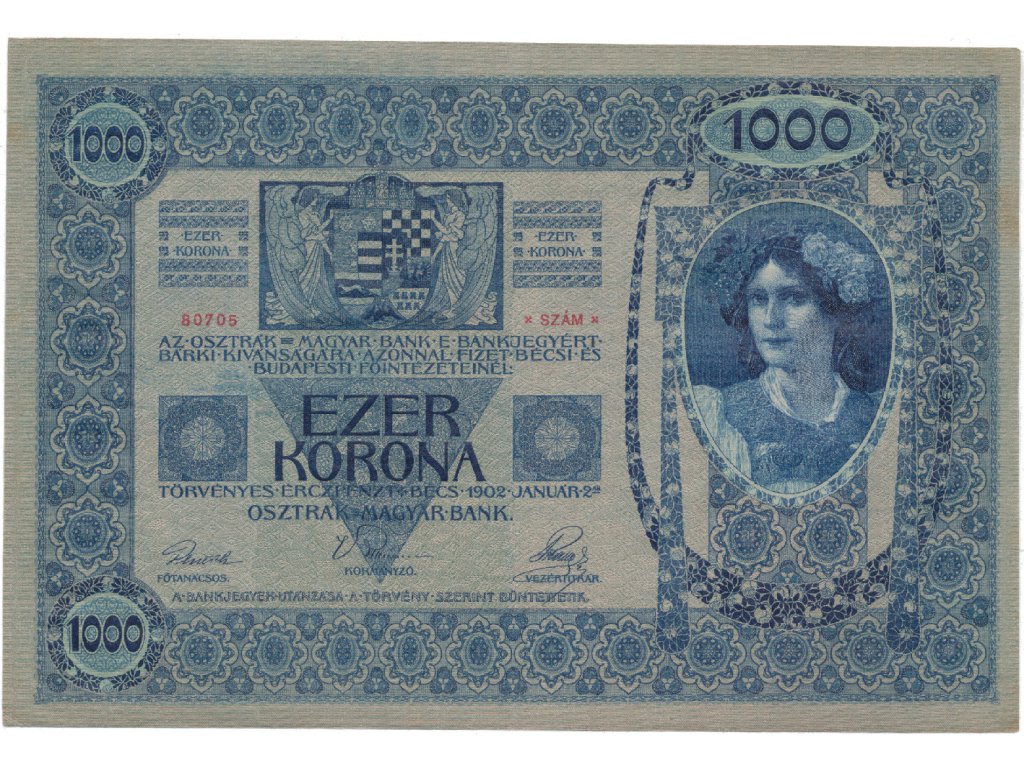 Rakousko - Uhersko, 1000 Koruna 1902, podtisk šedozelený, bez přetisku, Hej.RU5a