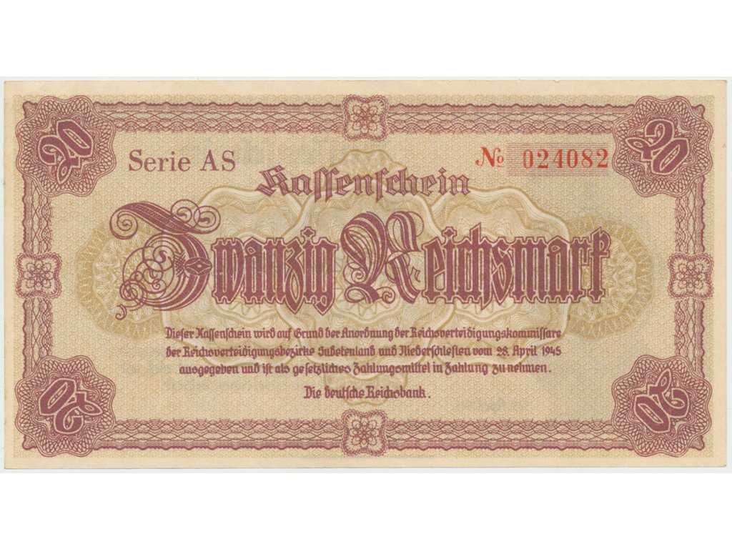 Reichenberg (Liberec) - Deutsche Reichsbank, 20 K 28. 4. 1945, série AS, HH.188.1.1a
