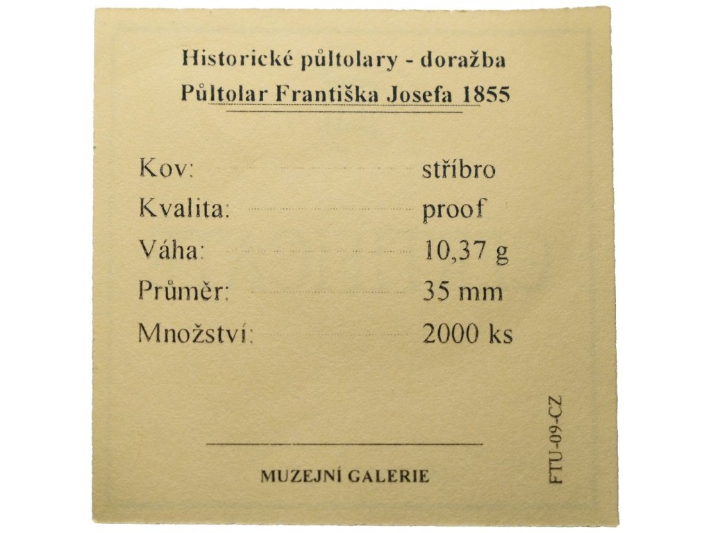 Replika - Historický 1/2 tolar - František Josef 1855