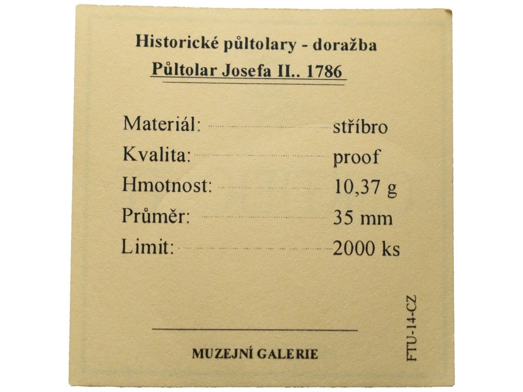 Replika - Historický 1/2 tolar - Josef II., 1786