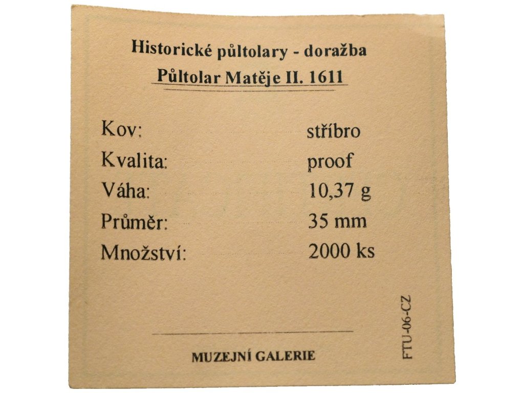 Replika - Historický 1/2 tolar - Matěj II. 1611