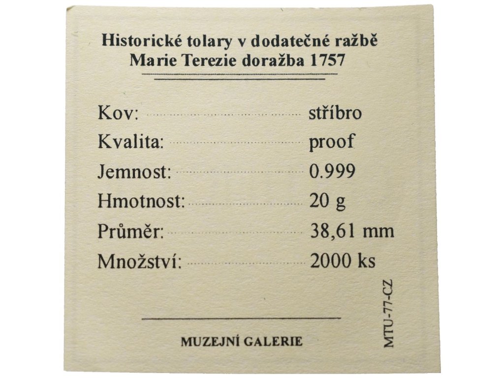 Replika - Historický tolar - Marie Terezie 1757