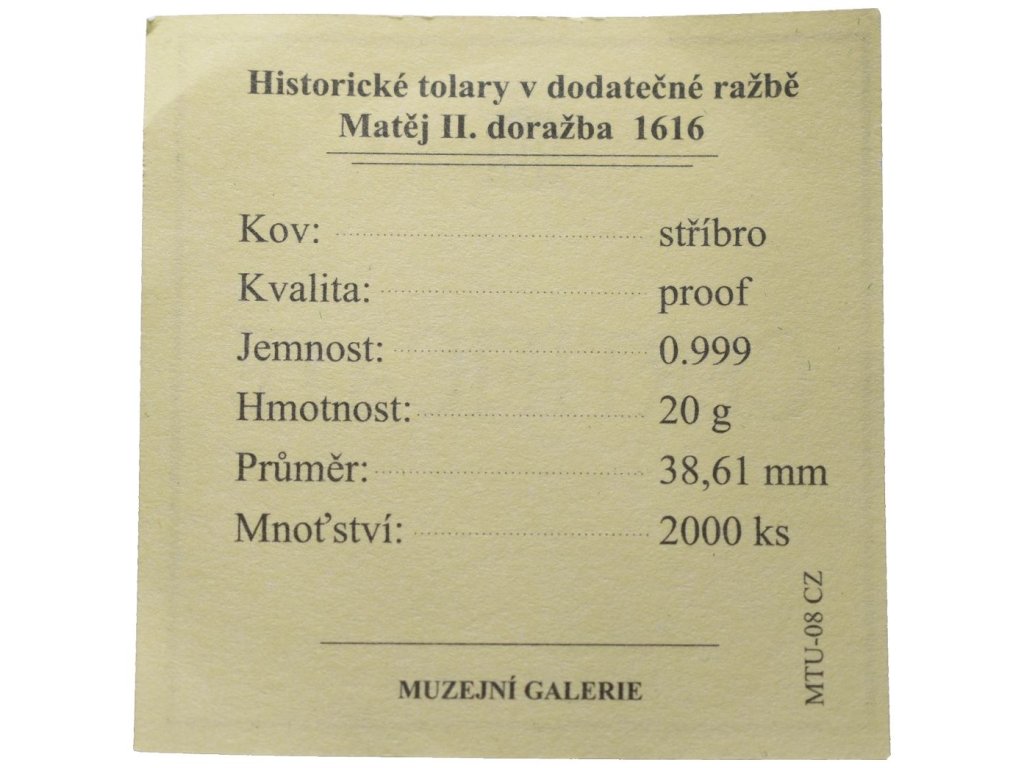 Replika - Historický tolar - Matěj II. 1616