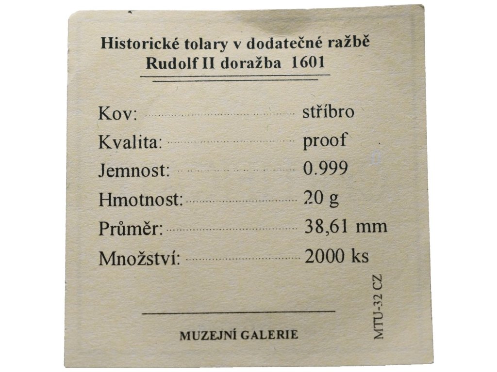 Replika - Historický tolar - Rudolf II 1601