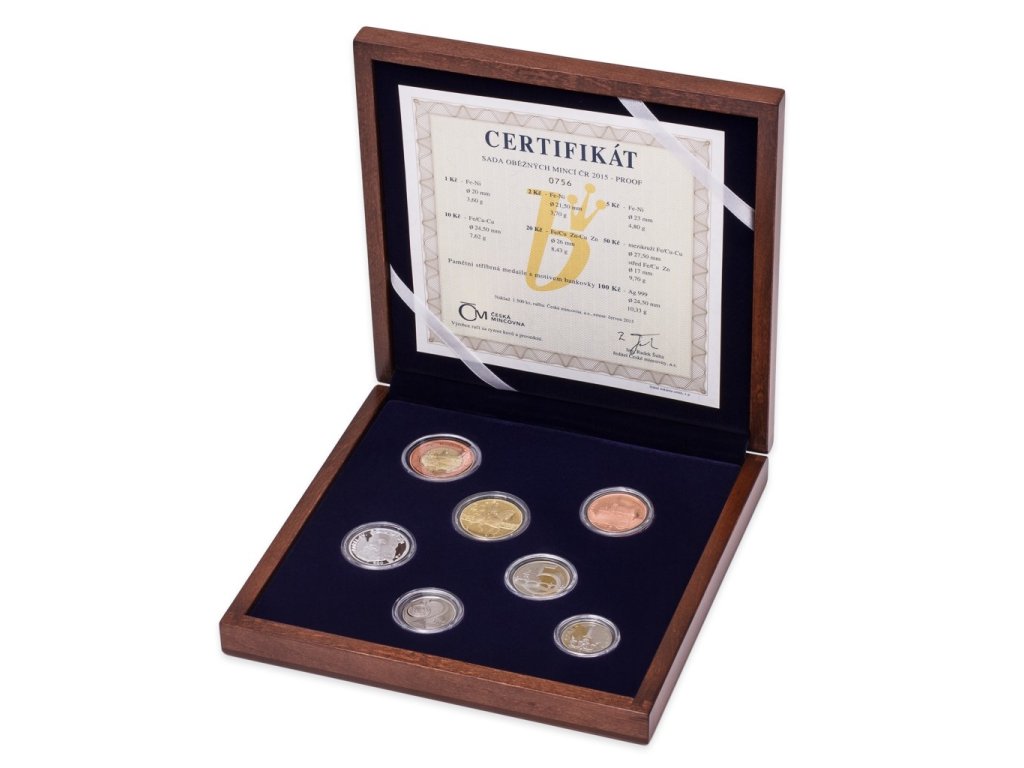 Ročníková sada mincí 2015 - Česká Republika, PROOF, dřevěná etue