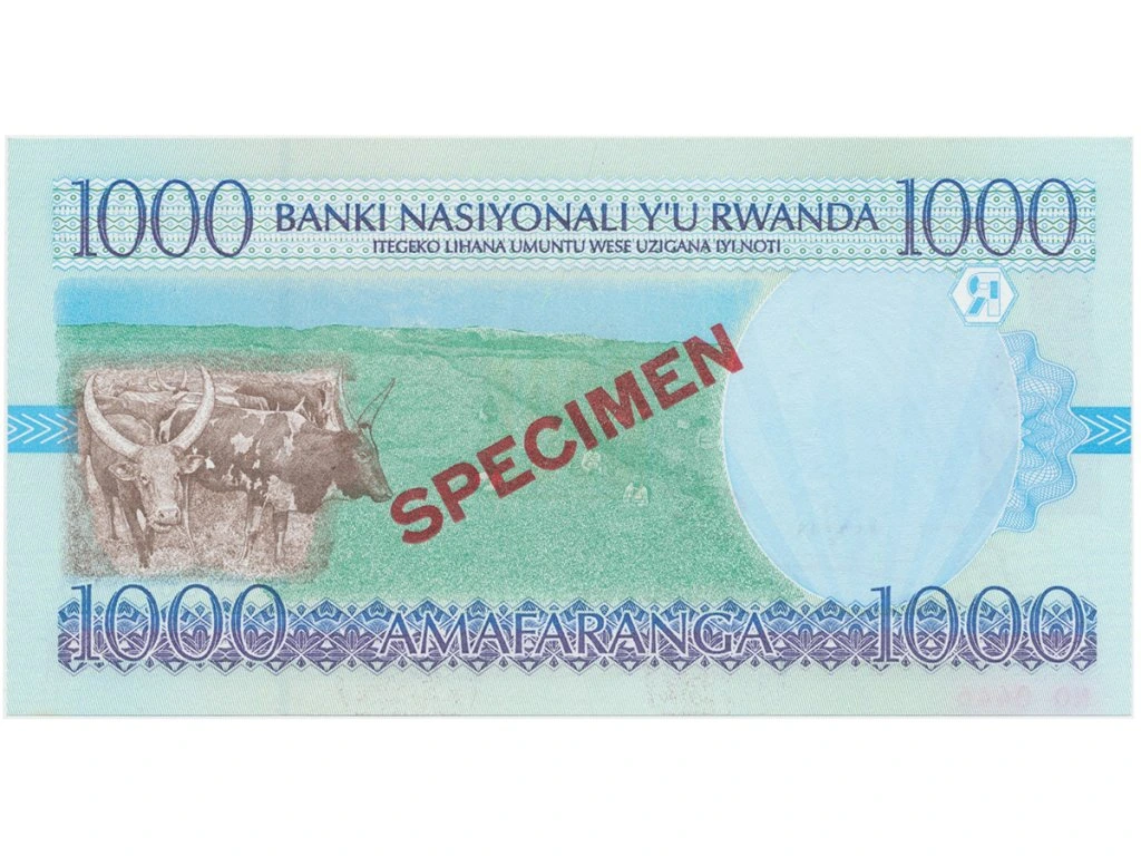 Rwanda, 1000 Francs 1998, bankovní vzor, AA0000000, P.27s