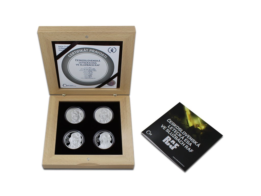 Sada čtyř stříbrných mincí Československá letecká esa ve službách RAF