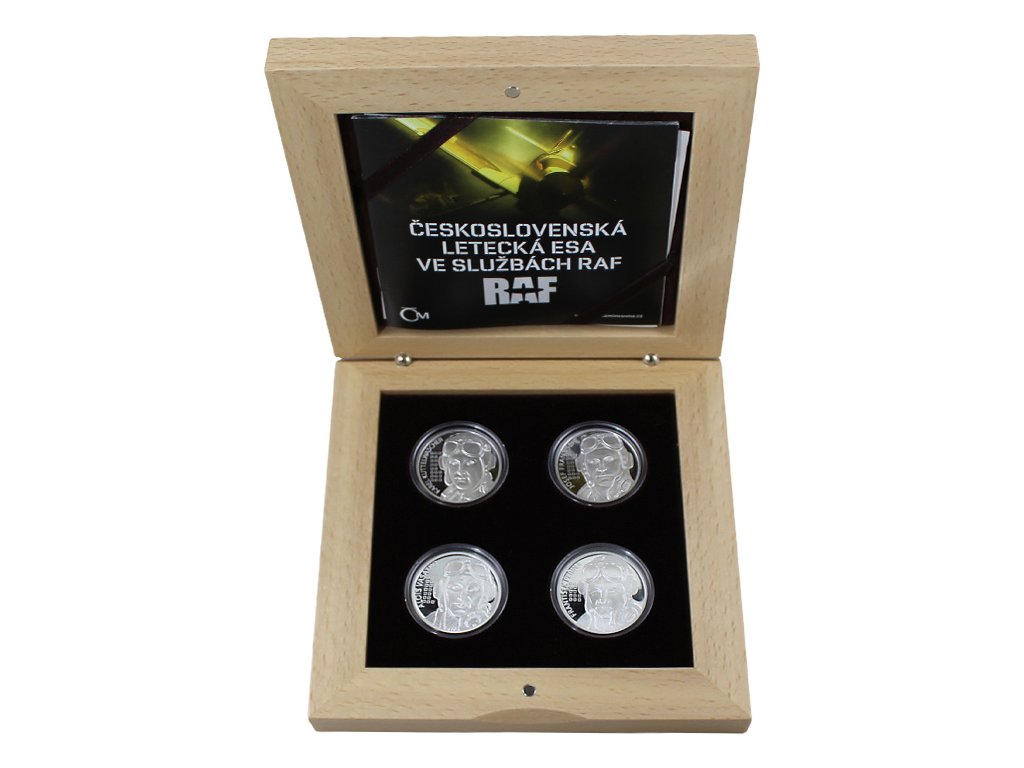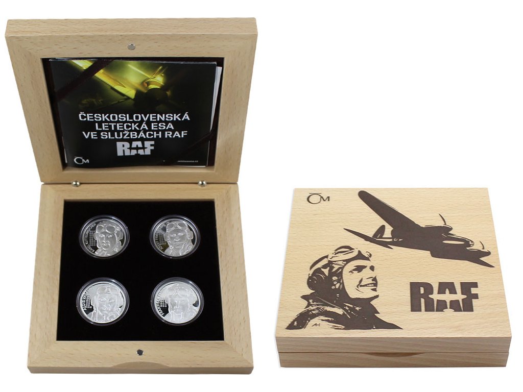 Již potřetí vzdává Česká mincovna hold odvaze Čechoslováků, kteří v čase druhé světové války sloužili v britském Královském letectvu. Po symbolech a letounech československých perutí RAF se v sadě čtyř stříbrných mincí představují naši nejúspěšnější letci – takzvaná letecká esa.