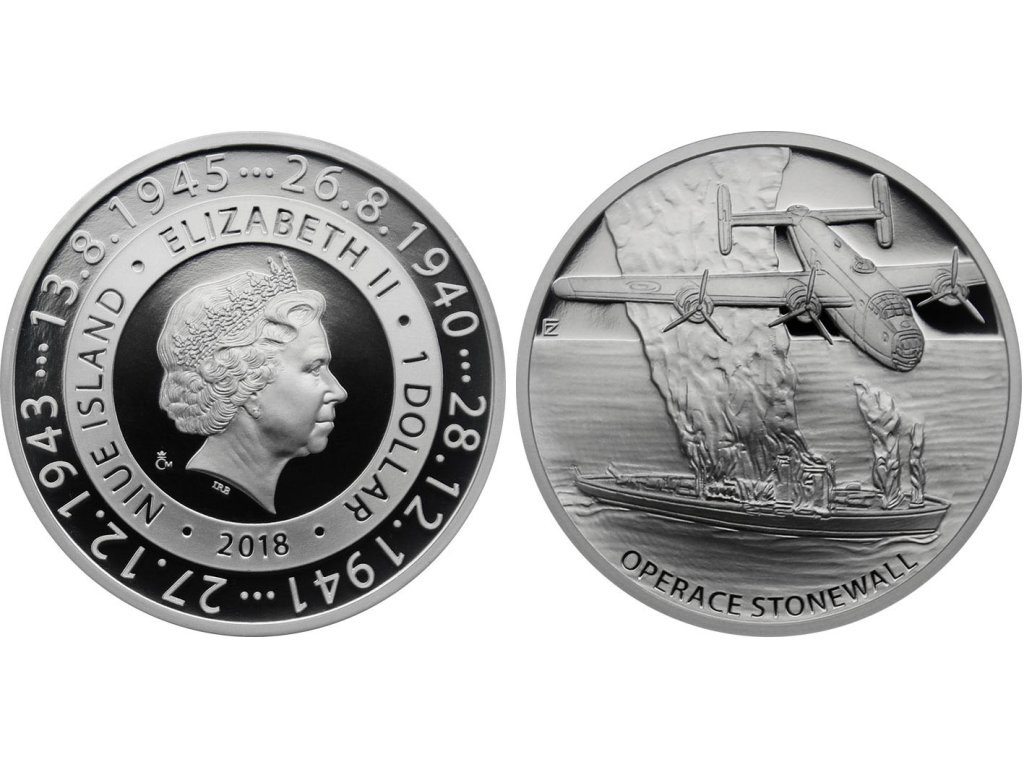 Na reverzních stranách jednotlivých mincí se v podání akademického sochaře Zbyňka Fojtů objevují tyto válečné výjevy – českoslovenští stíhači útočí nad doverskými útesy na německý bombardér; posádka bombardéru Wellington je po nouzovém přistání na hladině moře vydána na milost živlům i nepřátelskému zajetí; bombardér Liberator potápí lamač blokád; Praha vítá své letce, kteří se vracejí z exilu. Společná averzní strana pak náleží atributům ostrova Niue (zahraničního emitenta, který České mincovně umožňuje vydávat vlastní pamětní mince), tj. jménu a portrétu královny Alžběty II., roku emise 2018 a nominální hodnotě 1 DOLLAR (NZD). Tyto náležitosti jsou obklopeny opisem, který uvádí letopočty událostí vyobrazených na jednotlivých mincích.