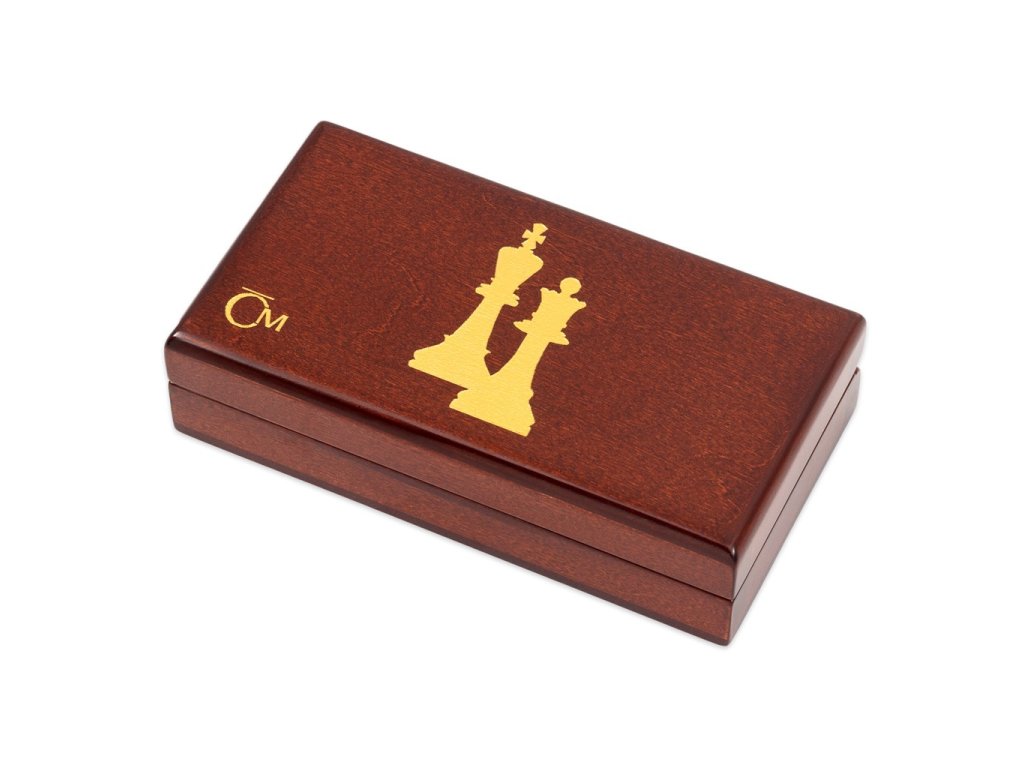 Dukáty jsou uloženy do elegantní dřevěné krabičky s víčkem ozdobeným rytinou šachových figurek, které symbolizují krále a královnu. Uvnitř najdete také ilustrovaný certifikát pravosti s průvodním slovem autora.