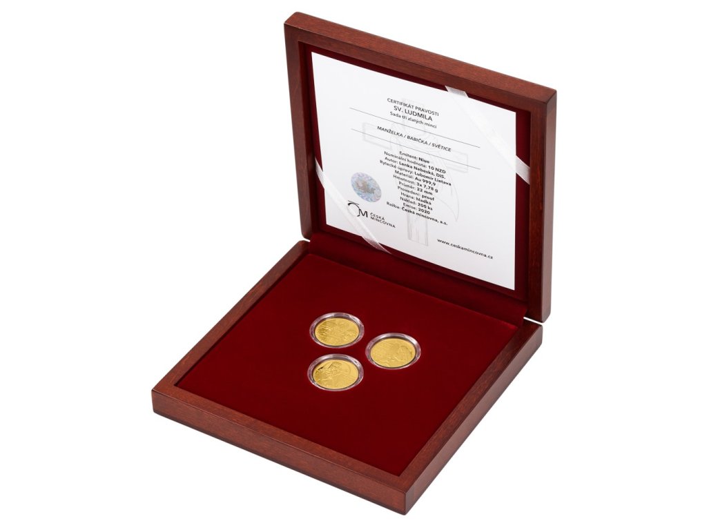 Po svatém Janu Nepomuckém vzdává trojice zlatých mincí České mincovny hold dalšímu náboženskému symbolu naší vlasti – svaté Ludmile.
