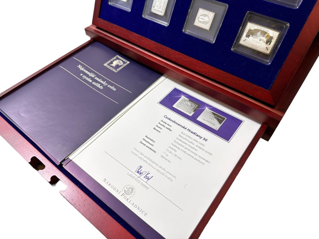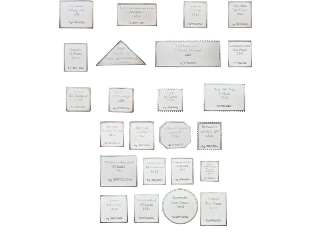 Sada - Nejcennější známky světa v ryzím stříbře - 24 Kusů Ag - Certifikát, Proof, Etue