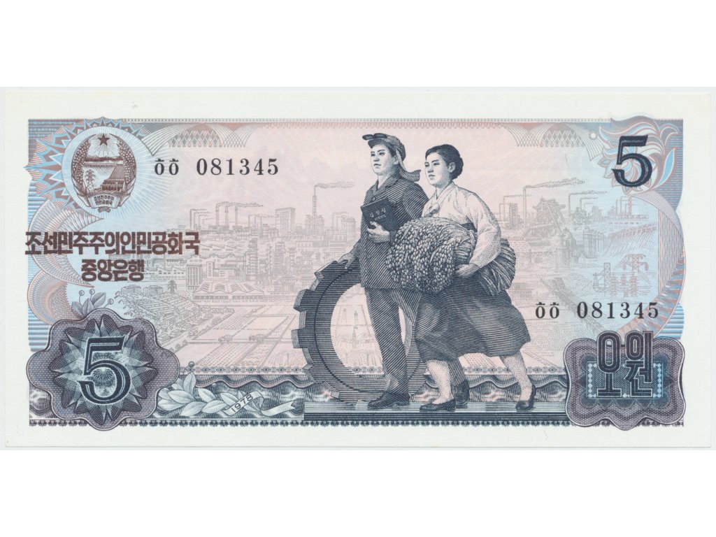 Severní Korea, 5 Won 1978, P.19e, černé číslování