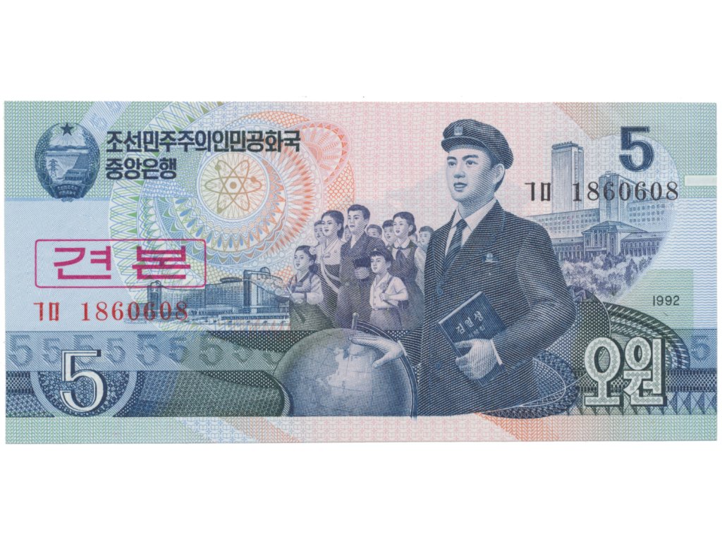 Severní Korea, 5 Won 1992, přetisk SPECIMEN, P.40as