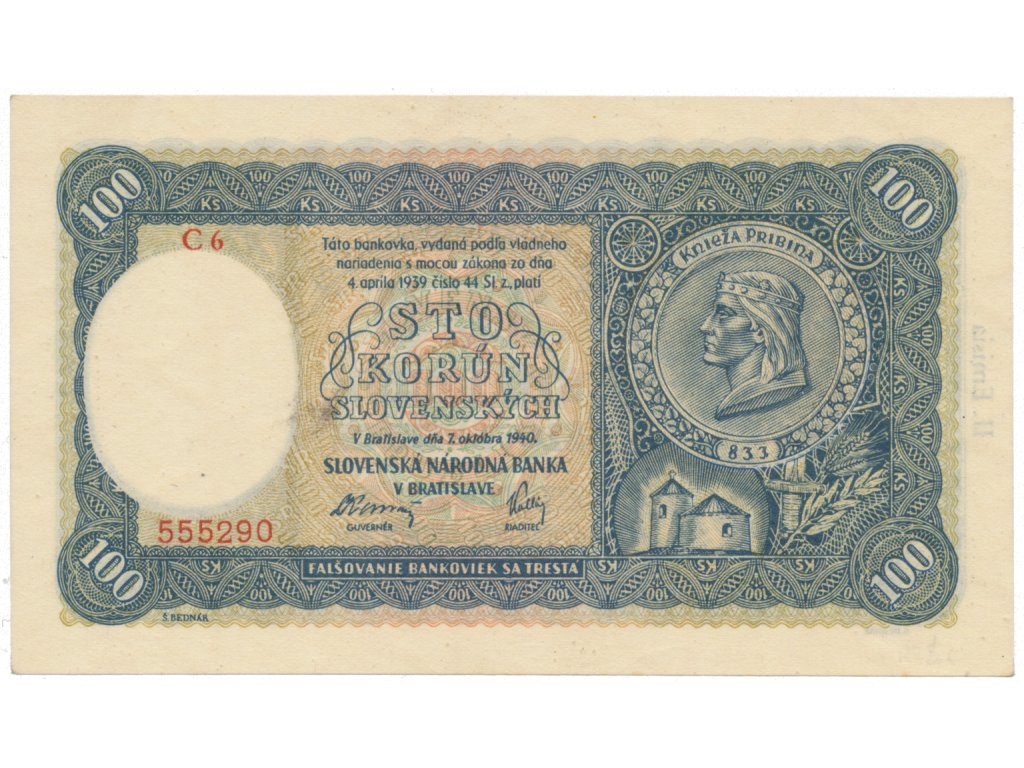 Slovensko, 100 Koruna 1940, II, vydání, série C 6, Hej.49a1