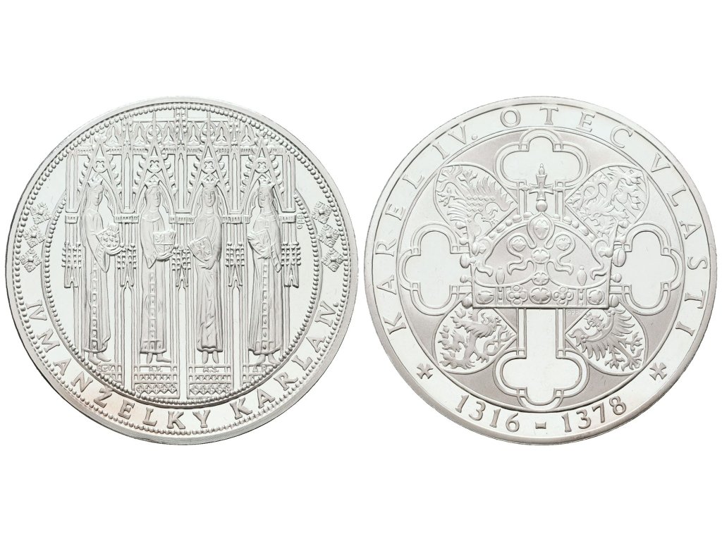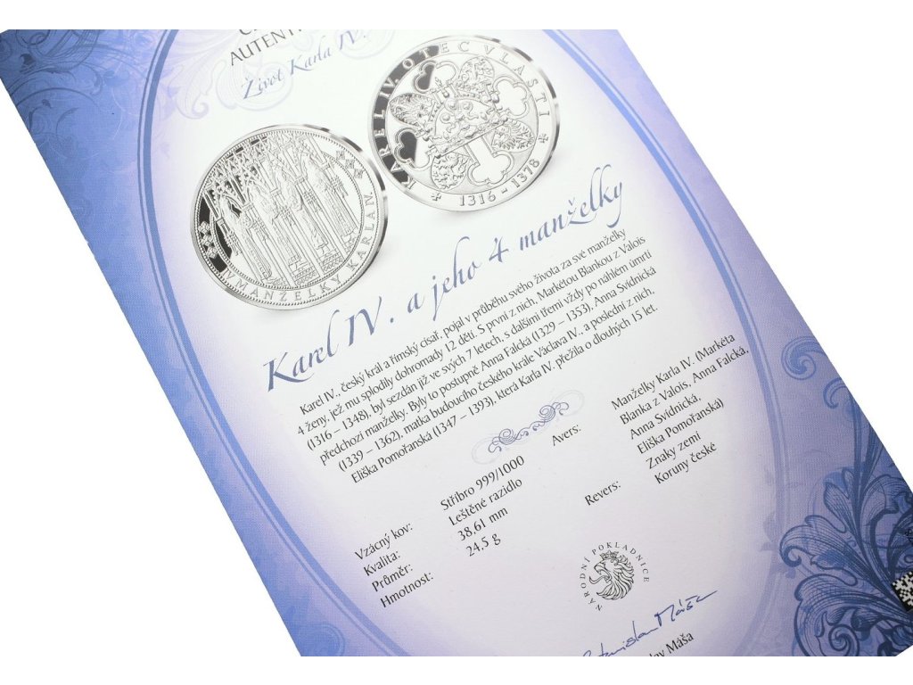 Stříbrná investiční medaile - Karel IV. a jeho 4 manželky - Ag 24,5 g - 999/1000 + Certifikát