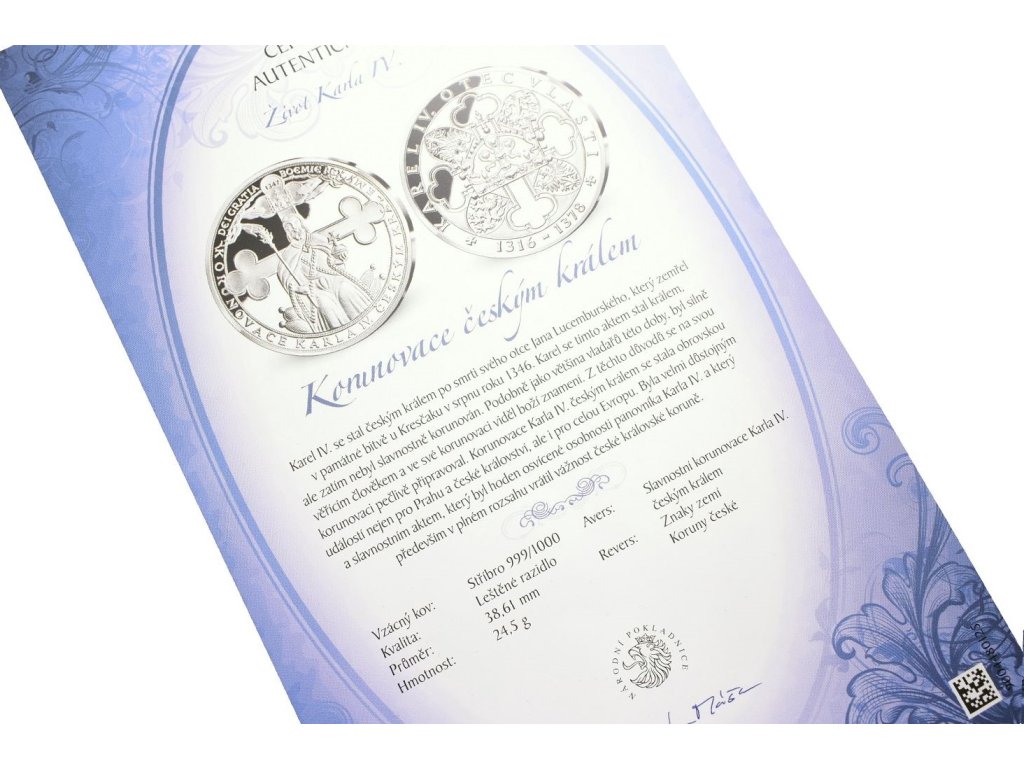 Stříbrná investiční medaile - Korunovace českým králem - Ag 24,5 g - 999/1000 + Certifikát