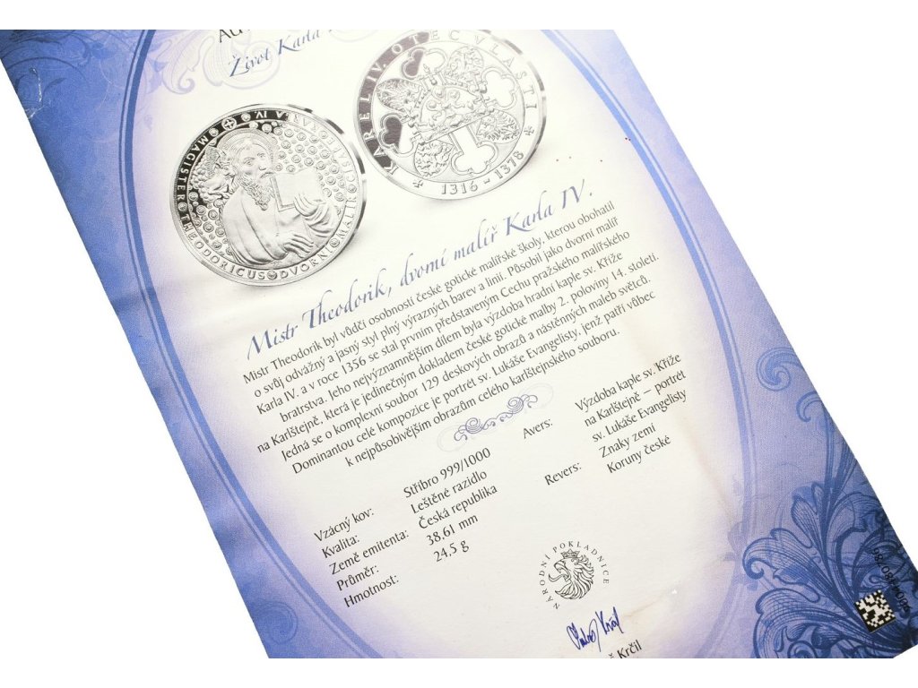 Stříbrná investiční medaile - Mistr Theodorik - Ag 24,5 g - 999/1000 + Certifikát