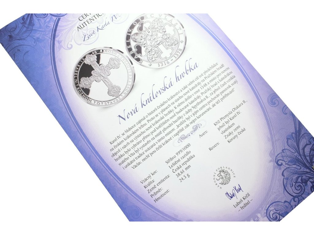 Stříbrná investiční medaile - Nová královská hrobka - Ag 24,5 g - 999/1000 + Certifikát
