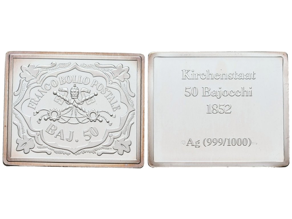 Stříbrná známka - 50 Bajocchi Církevního státu z roku 1852 - Ag 10 g - 999/1000