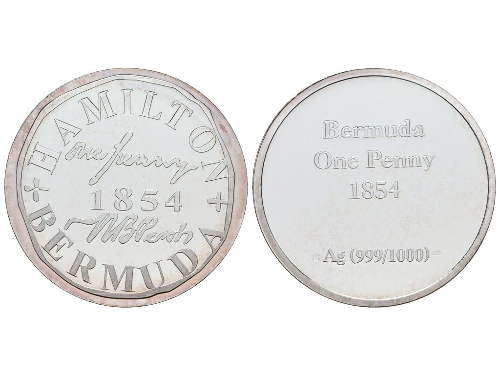 Stříbrná známka - Bermudský Perot - jedna penny - Ag 10 g - 999/1000