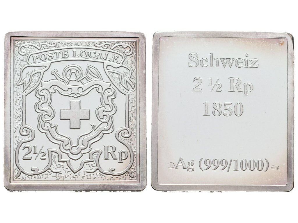Stříbrná známka - Švýcarský 'Posthorn' z roku 1850 - Ag 6 g - 999/1000