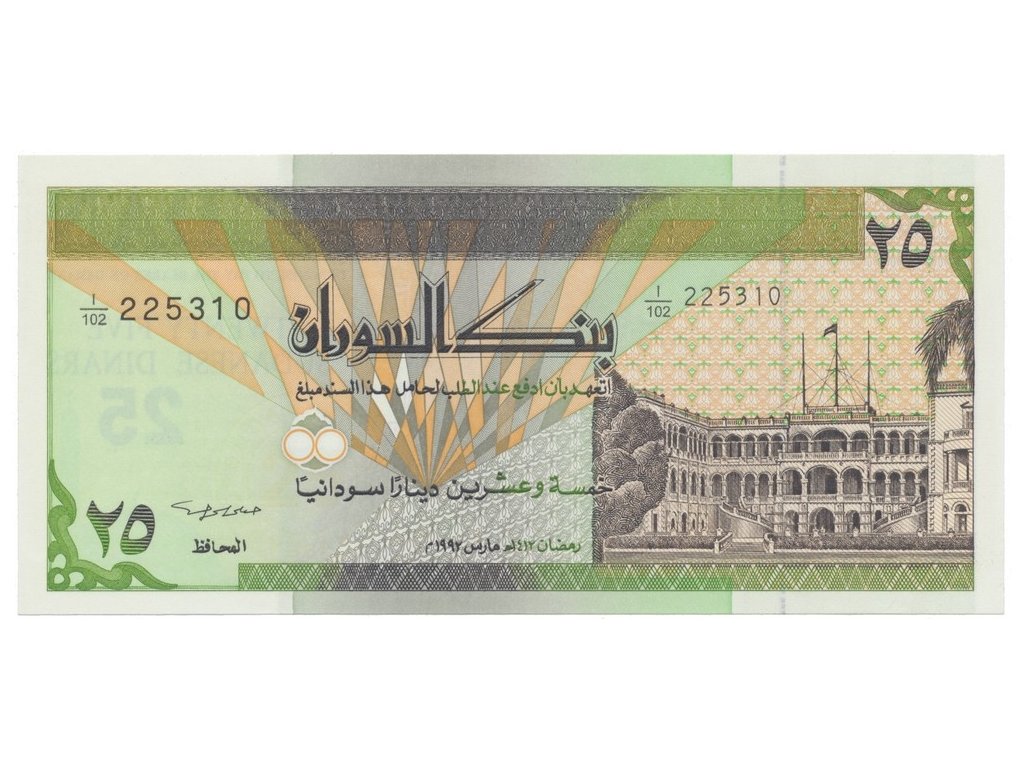 Súdán, 25 Dinars 1992, P.53a