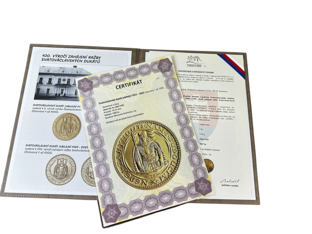 Svatováclavský dukát 1923 - 2023, číslovaný, číslo 76
