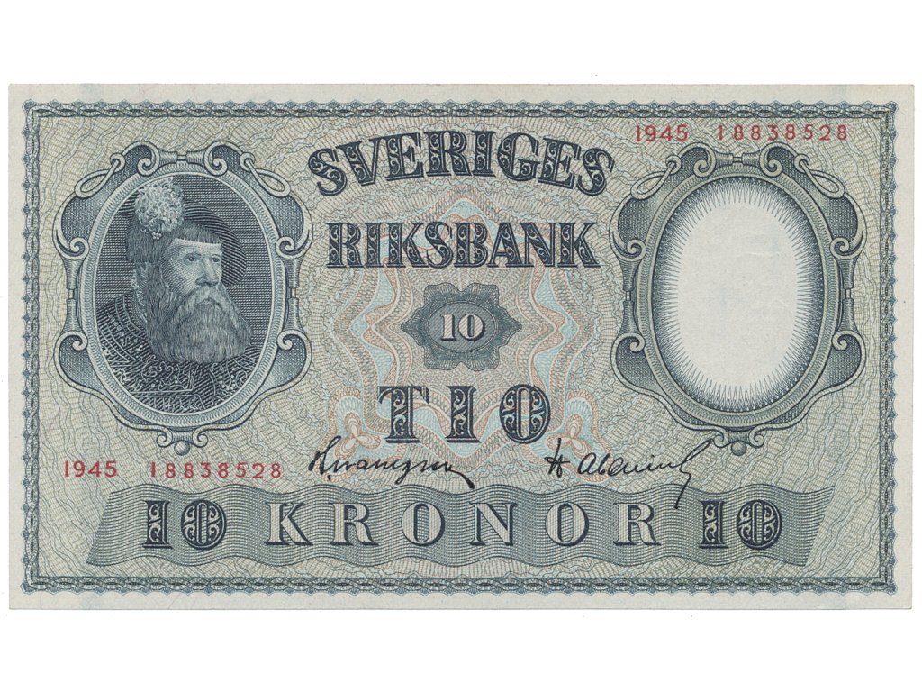 Švédsko, 10 Kronor 1945, červený číslovač, P.40f