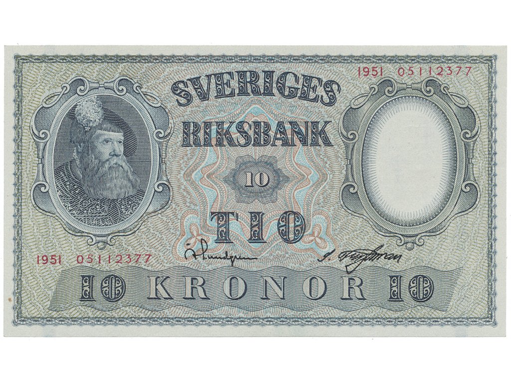 Švédsko, 10 Kronor 1951, červený číslovač, P.40l