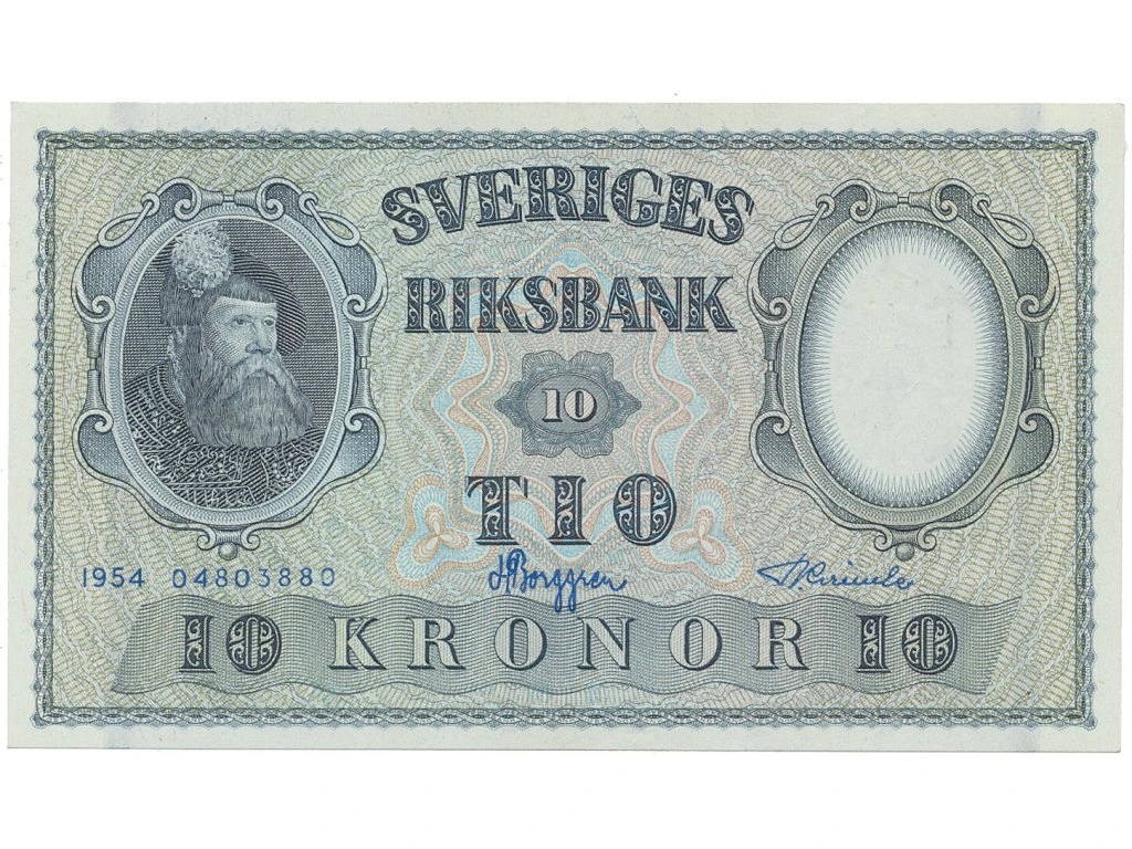 Švédsko, 10 Kronor 1954, modrý číslovač, P.43b