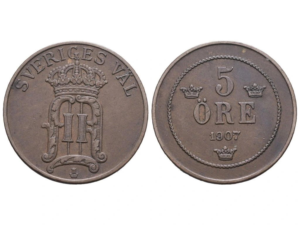 Švédsko, 5 Öre 1907