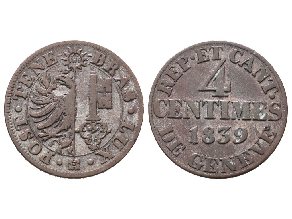 Švýcarsko - Ženeva, 4 Centime 1839