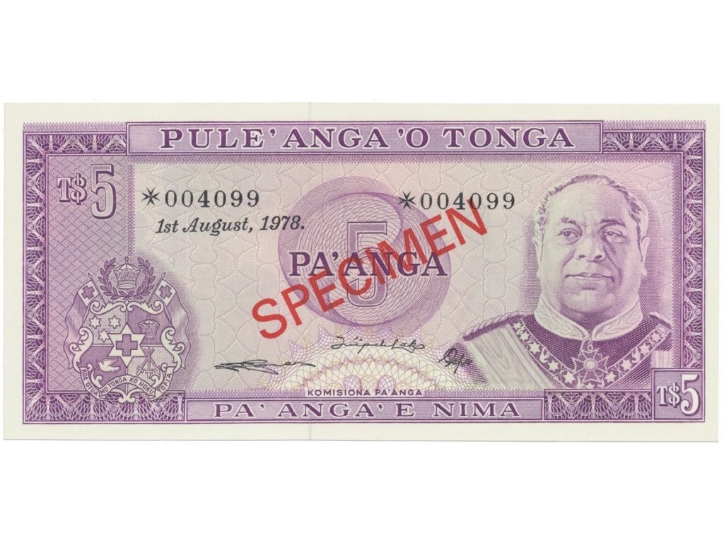 Tonga, 5 Pa´nga 1978, SPECIMEN, P.21cs