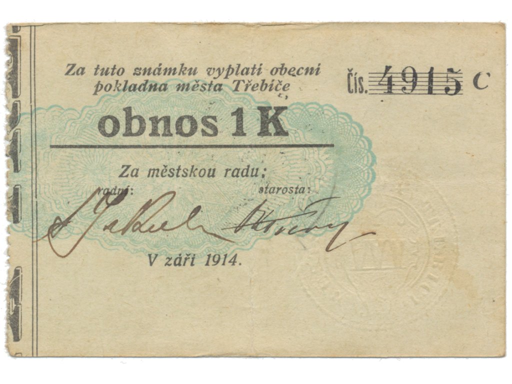 Třebíč - město, 1 K září 1914, silnější K, HH.223.5.10k1