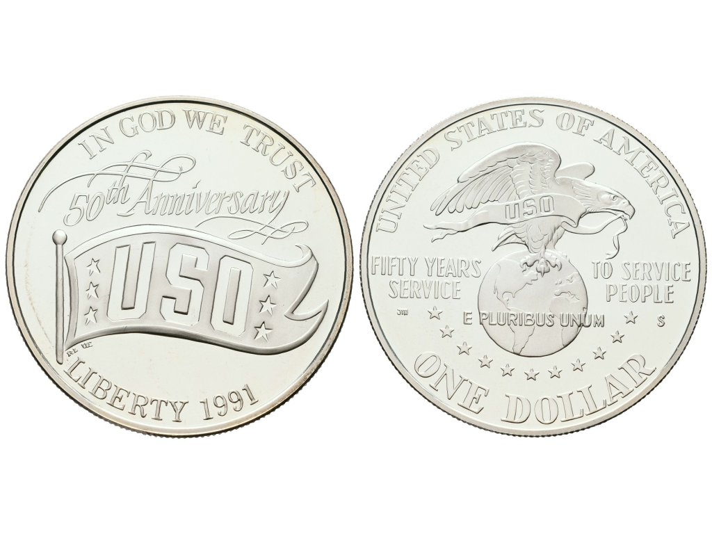 USA, 1 Dollar 1991 - United Services Organization (USO), PROOF