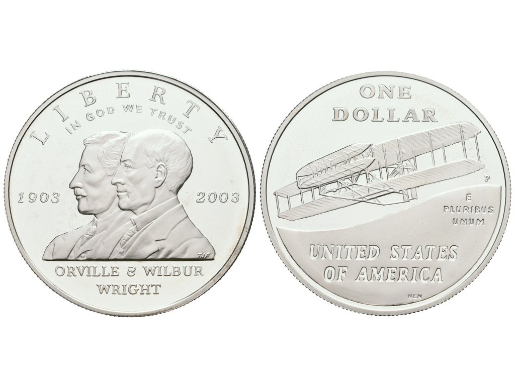 USA, 1 Dollar 2003 - Bratři Wrightové - První let letadlem, PROOF