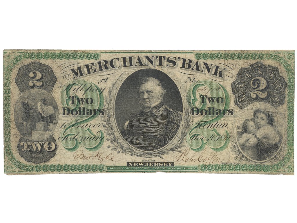 USA, New Jersey, Trenton, The Merchants Bank, 2 Dollars 20. 11. 1860