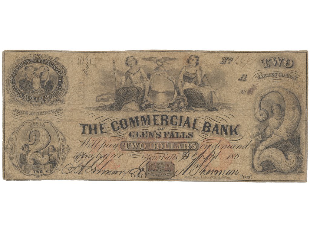 USA, New York, Glen´s Falls, 2 Dollars 1864