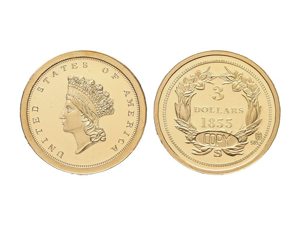 USA, replika 3 Dollars 1855 S