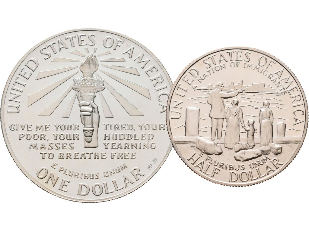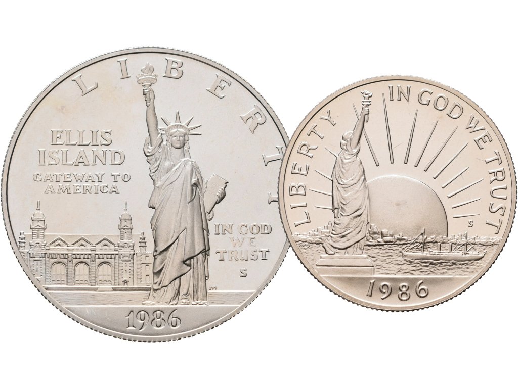 USA, Sada stříbrných mincí Dollar a 1/2 Dollar 1986 PROOF
