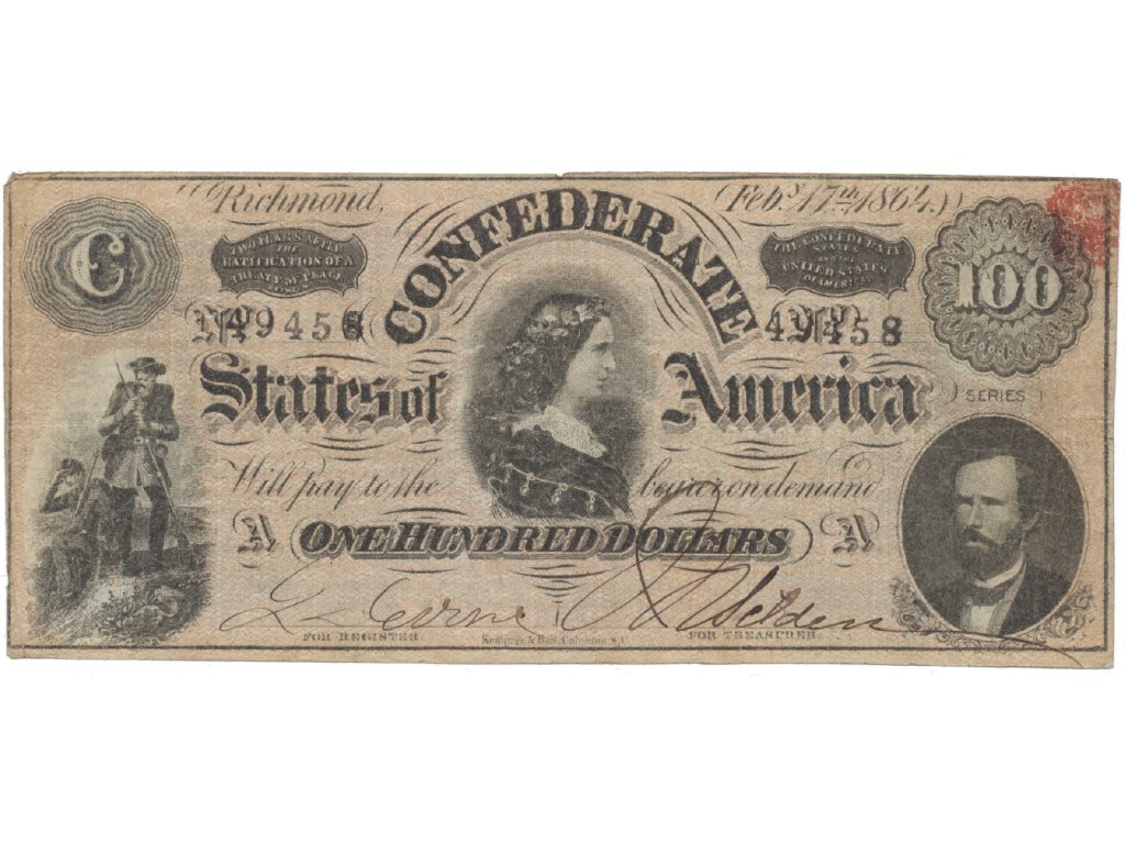 USA - Konfederace, 100 Dollars 1864, P.71