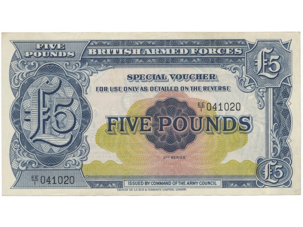 Velká Británie, 5 Pounds (1948), BAF - vojenské vydání, P.M23