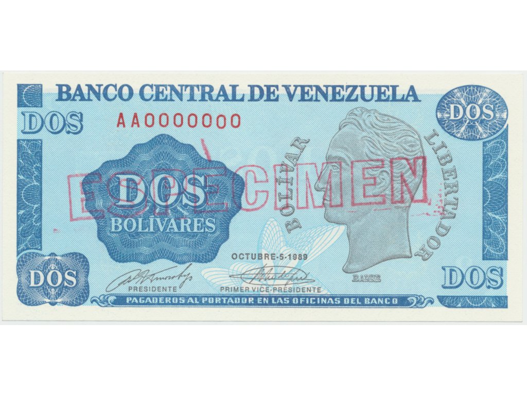 Venezuela, 2 Bolivares 1989, anulát - ESPECIMEN, P.69s