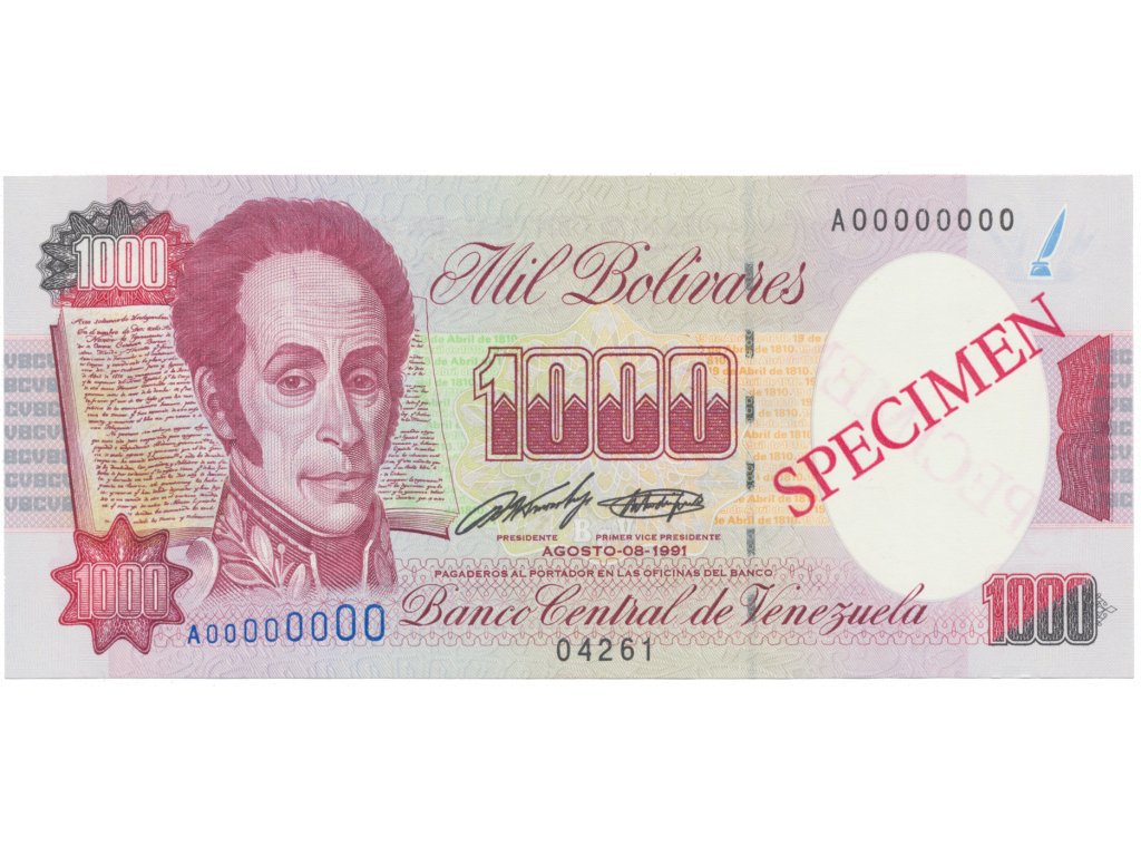 Venezuela, 1000 Bolivares 1991, anulát - SPECIMEN, P.73as