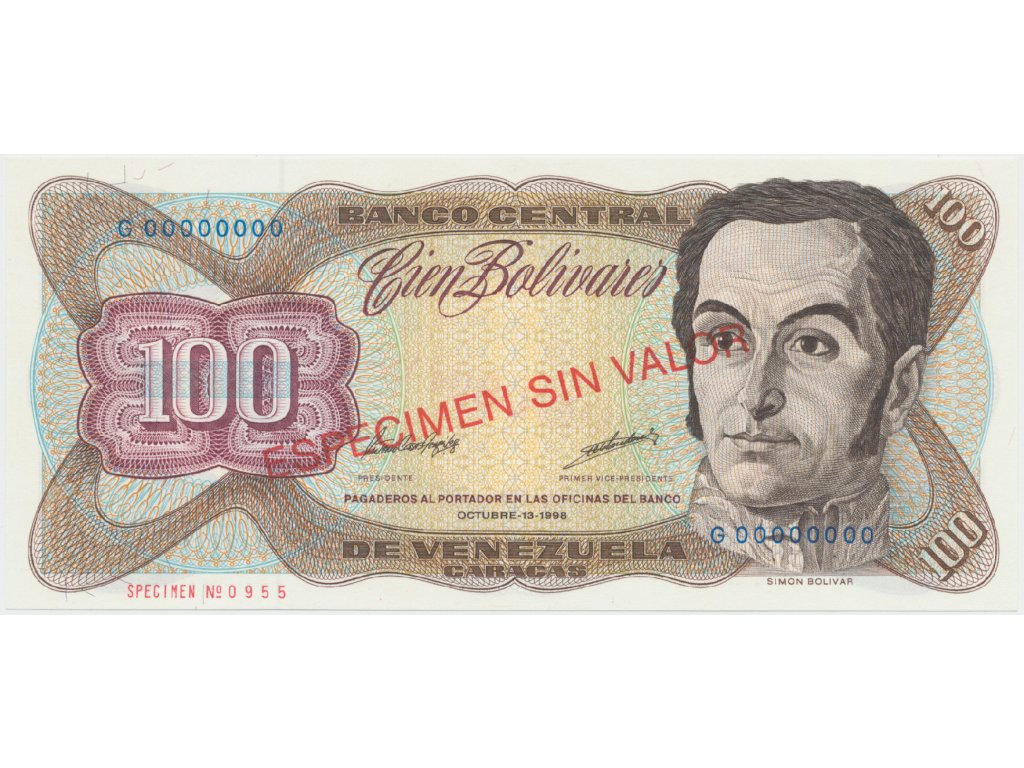 Venezuela, 100 Bolivares 1998, anulát - ESPECIMEN SIN VALOR, P.66gs