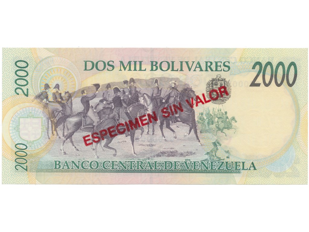 Venezuela, 2000 Bolivares 1997, anulát - ESPECIMEN SIN VALOR, P.77as