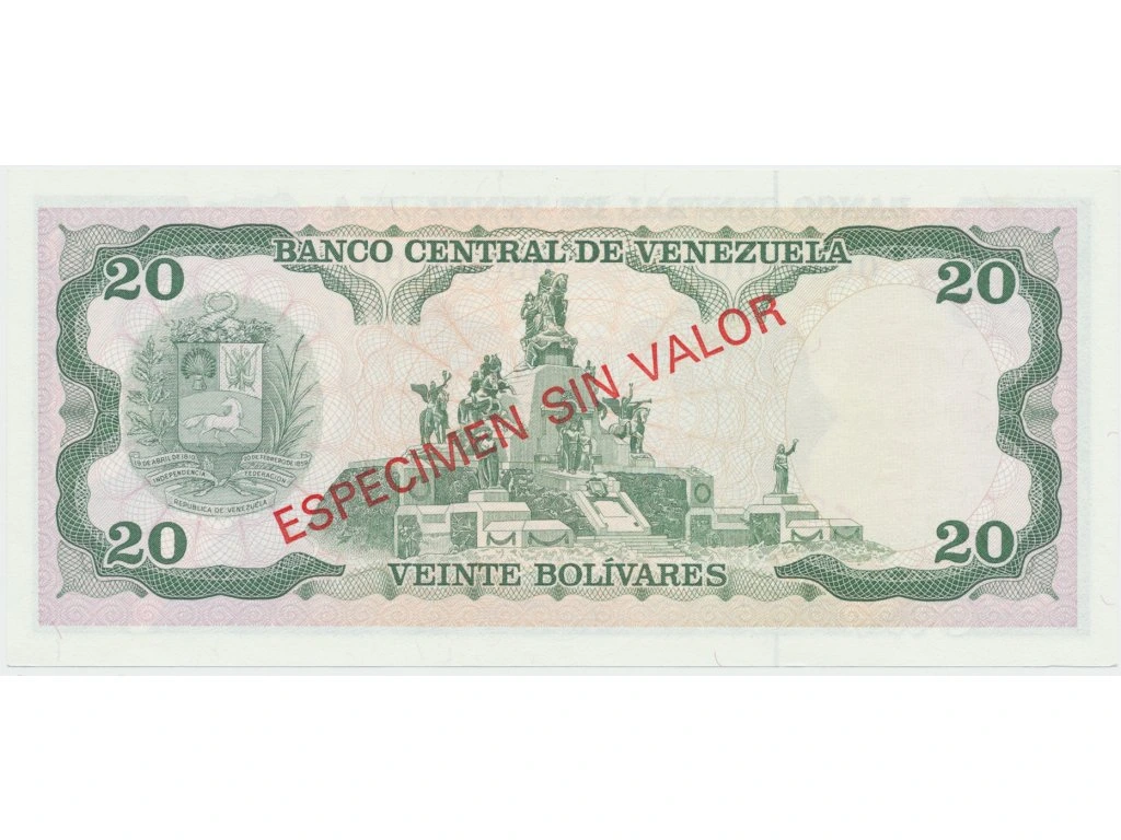 Venezuela, 20 Bolivares 1995, anulát - ESPECIMEN SIN VALOR, P.63es