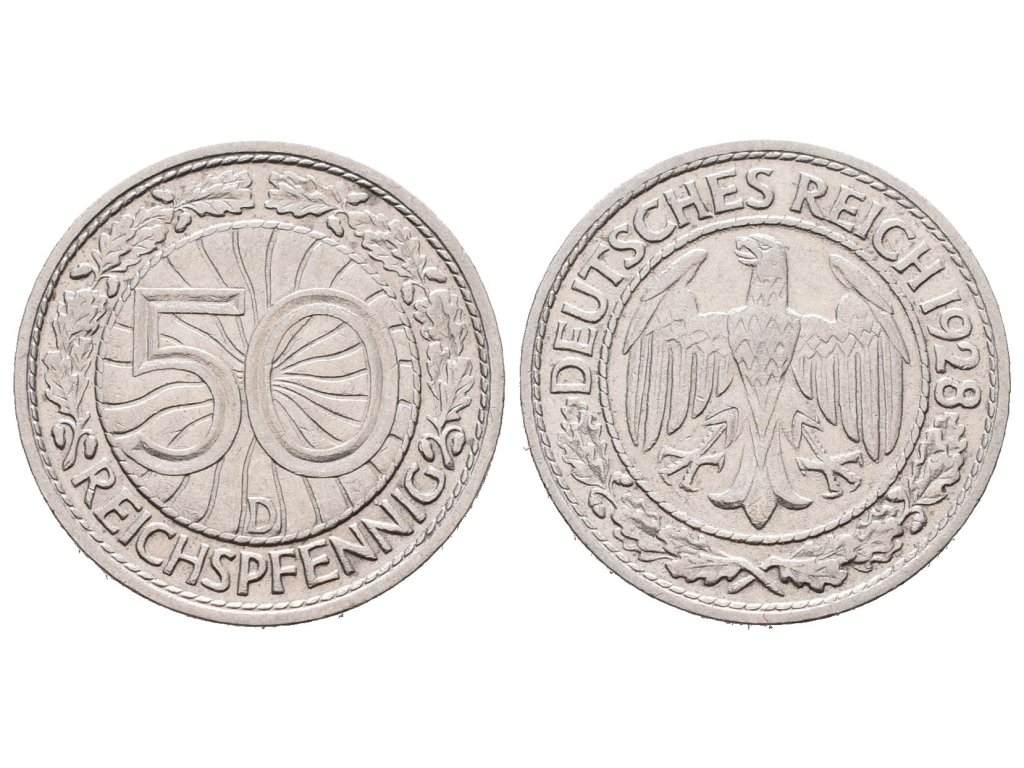 Výmar, 50 Reichspfennig 1928 D, J